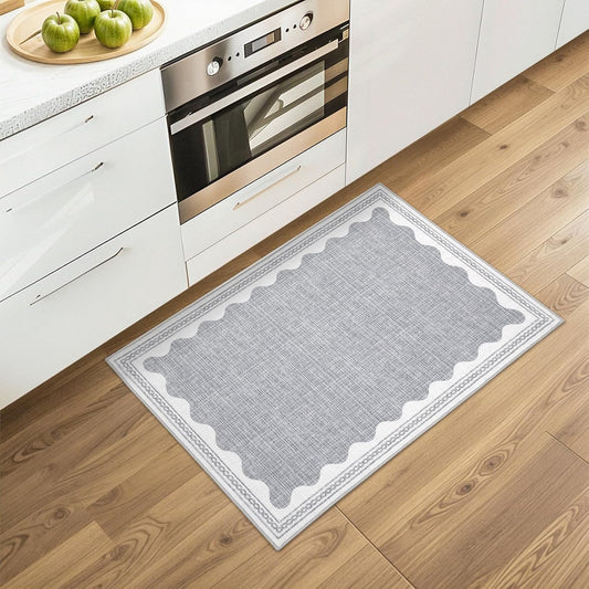 Scalloped Rug 2x3 Rugs for Entryway, Solid Grey Rug Small Area Rug Non Slip Scalloped Bath Mat, Washable Rugs Front Door Mat Indoor Entrance,Soft Girls Nursery Dorm Carpet for Bedroom Kitchen