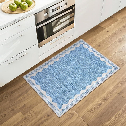 Scalloped Rug 2x3 Rugs for Entryway, Solid Blue Rugs Small Area Rug Non Slip Scalloped Bath Mat, Washable Front Door Mat Indoor Entrance,Soft Girls Nursery Dorm Carpet for Bedroom Kitchen
