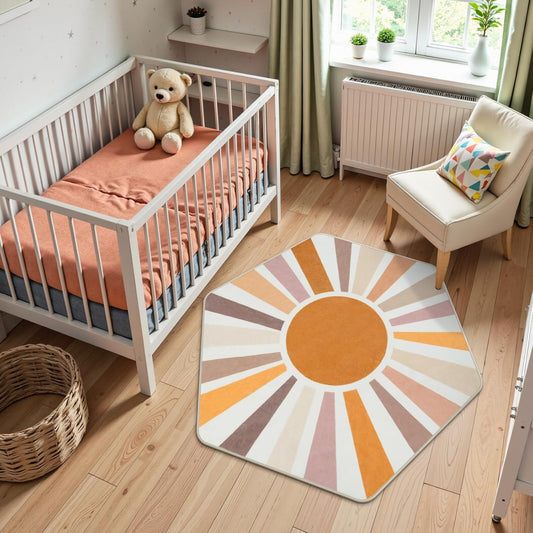 STARUIA Boho Washable Hexagon Rainbow Nursery Rug for Princess Tent Kids Play Castle, 4.6ft Colorful Sun for Kids Play Room, Ultra Soft Carpet for Girls Boys Room Playhouse Classroom Dorm Home Decor