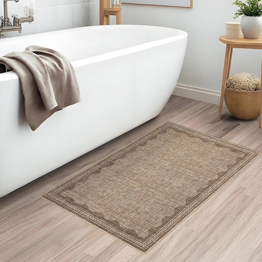 Scalloped Rug 2x6 Runners for Hallways, Digital Solid Jute Runner Rug Non Slip Scalloped Bath Runner, Washable Rugs for Bedroom Girls, Rugs for Kitchen Floor Soft Dorm Nursery Carpet