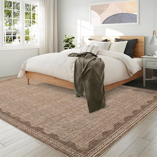 Scalloped Washable Rug 10x13 Area Rugs for Living Room, Solid Tan Rug for Bedroom Girls, Non Slip Throw Carpet with Rubber Back, Soft Dorm Nursery 10x13 Scalloped Rugs for Dining Room