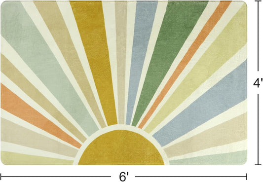 STARUIA Boho Washable Rug 4'x6' Kids Area Rug for Playroom, Non-Slip Kids Rug for Bedroom, Rainbow Modern Sun Carpet Soft Throw Sunshine Rugs for Office Nursery Entryway Dorm