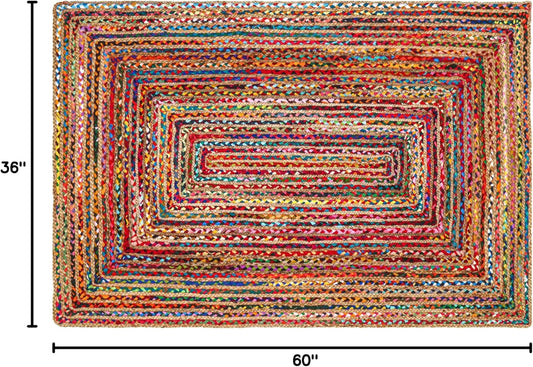 3'x5' Handwoven Jute Chindi Area Rug - Colorful Boho Rugs for Living Room - Hand Braided Multicolor Bohemian Rug for Farmhouse, Bedroom, Dining Room, Classroom, Hallway, Kitchen, Office