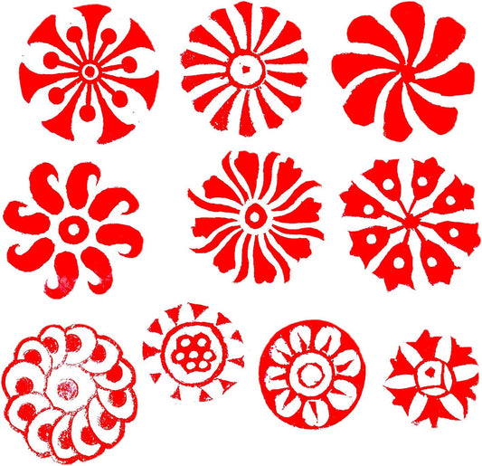 Paper Print Stamps Intricate Small Round Pattern Wood Blocks (Set of 10)