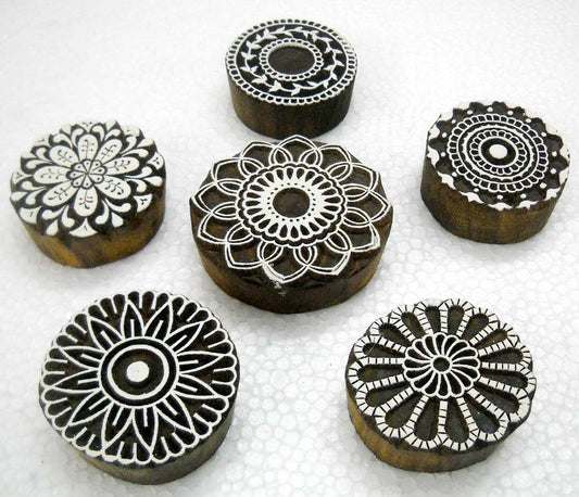 Wholesale (Pack of 6) Round Shaped Floral Designs 100% Handcarved Wooden Block Stamps/Tattoo/Indian Textile Printing Blocks.