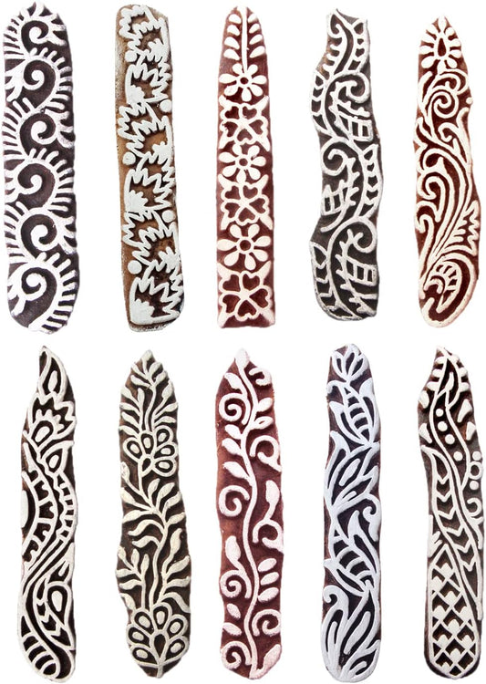 Mehndi Print Blocks Stylish Border Pattern Wooden Stamps (Set of 10) Htag2156