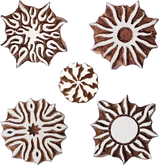 Royal Kraft Sun Wooden Printing Stamps (Set of 5) - DIY Henna Fabric Textile Paper Clay Pottery Blocks Htag2219