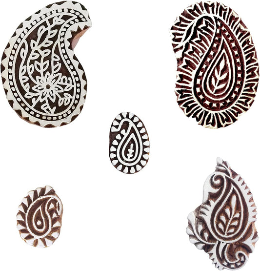 Royal Kraft Paisley Wooden Printing Stamps (Set of 5) - DIY Henna Fabric Textile Paper Clay Pottery Blocks Htag2211