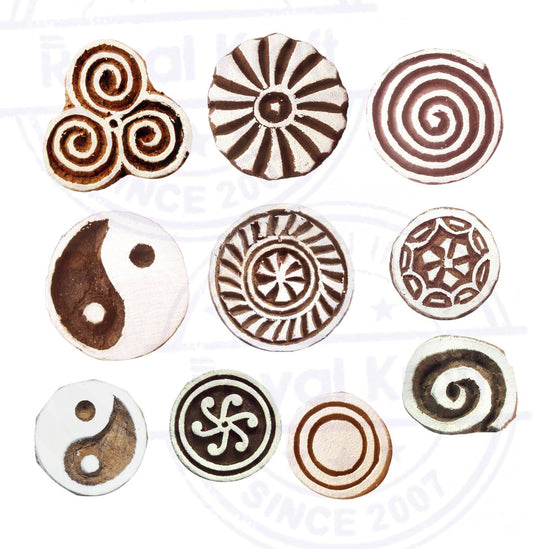 Royal Kraft Round Wooden Printing Stamps (Set of 10) - DIY Henna Fabric Textile Paper Clay Pottery Blocks Htag2181