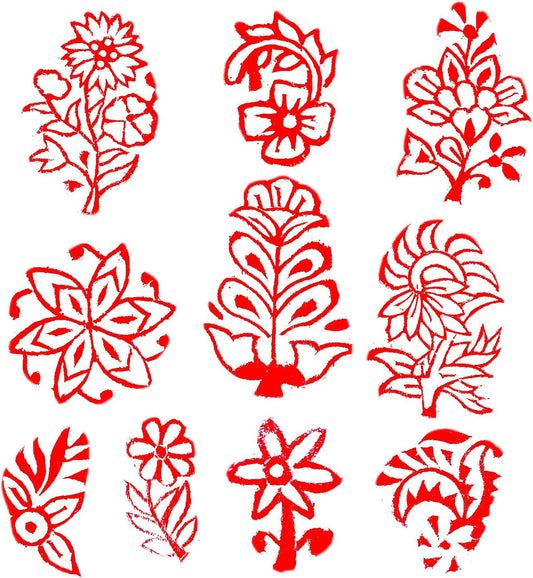Royal Kraft Floral Wooden Printing Stamps (Set of 10) - DIY Henna Fabric Textile Paper Clay Pottery Blocks Htag2172