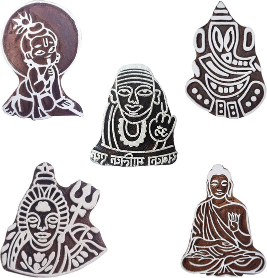 Royal Kraft Religious Wooden Printing Stamps (Set of 5) - DIY Henna Fabric Textile Paper Clay Pottery Blocks Htag2220