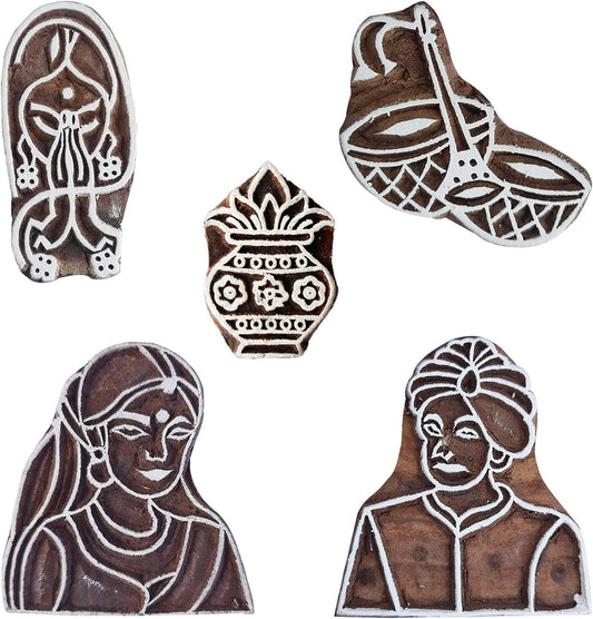 Royal Kraft Figure Wooden Printing Stamps (Set of 5) - DIY Henna Fabric Textile Paper Clay Pottery Blocks Htag2202