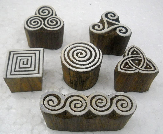 Royal Kraft Spiral Wooden Printing Stamps (Set of 5) - DIY Henna Fabric Textile Paper Clay Pottery Blocks Htag2230