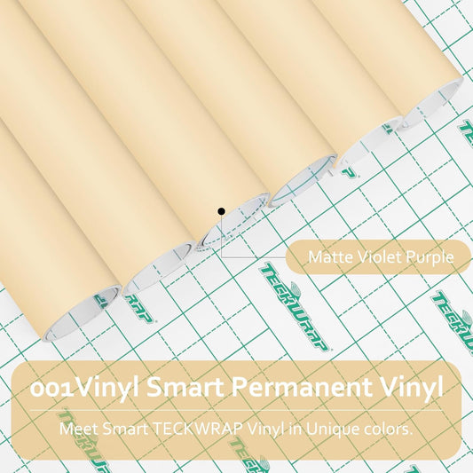 TECKWRAP Matte Vinyl Smart Adhesive Vinyl Permanent,13in x 5ft, Vinyl for DIY Craft Decal Projects, Compatible with Explore3/Maker3, Beige