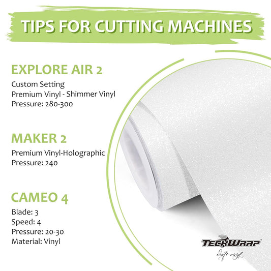 TECKWRAP White Permanent Glitter Vinyl – White Glitter Adhesive Vinyl Roll 1ft x 5ft, Shimmer Vinyl for DIY Crafts, Decals, Stickers