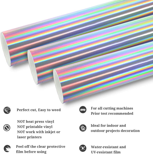 TECKWRAP Glossy Holographic Silver Chrome Vinyl 12" x 10ft