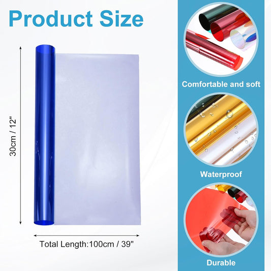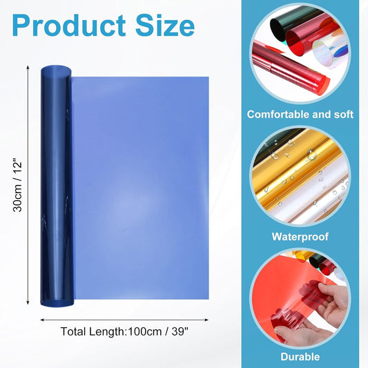 MECCANIXITY Iridescent Window Film,12" x 39" Iridescent Holographic PVC Fabric Dichroic Film Clear Vinyl Paper Roll for DIY Craft Gift Wrapping Bag Decoration,Blue