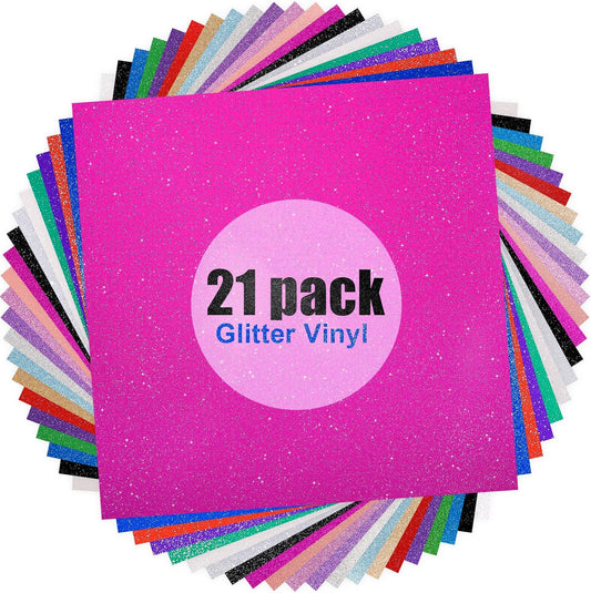 Glitter Vinyl Sheets Glossy and Matte Shimmer Permanent Vinyl Pack -12” X 12” 21 Pack Glitter Viny1 Permanent for Decor, Sticker