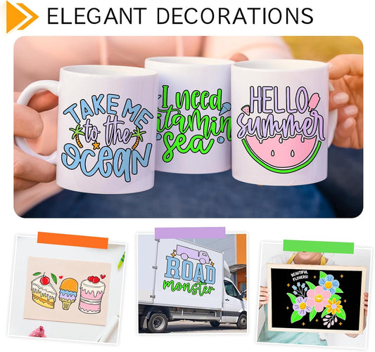 GIRAFVINYL Neon Permanent Vinyl 5 Sheets - 12”x12” Easy to Weed Bright Color Neon Permanent Adhesive Vinyl for Mugs, Sign, Banner,