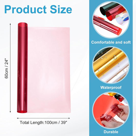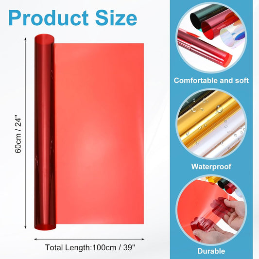 MECCANIXITY Iridescent Window Film,24" x 39" Iridescent Holographic PVC Fabric Dichroic Film Clear Vinyl Paper Roll for DIY Craft Gift Wrapping Bag Decoration, Red