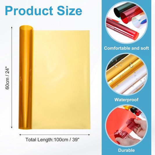 MECCANIXITY Iridescent Window Film,24" x 39" Iridescent Holographic PVC Fabric Dichroic Film Clear Vinyl Paper Roll for DIY Craft Gift Wrapping Bag Decoration,Gold