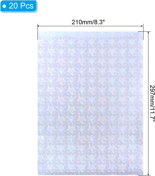 PATIKIL 11.7x8.3" Holographic Sticker Paper, 20Sheets A4 Polypropylene Self-Adhesive Transparent Waterproof Laminate Overlay Film for Photo Cards Scrapbook Decorations, Heart
