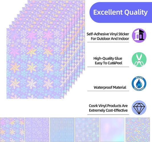 36 Sheets Holographic Sticker Paper, Clear Vinyl Laminate Film for Stickers Waterproof, Transparent Overlay Lamination Sticker Paper Self-Adhesive, 6 Patterns-8.5x11 Inch
