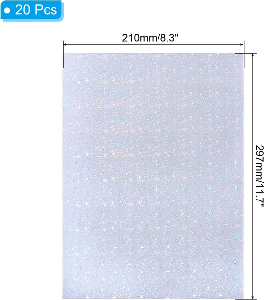 PATIKIL 11.7x8.3" Holographic Sticker Paper, 20Sheets A4 Polypropylene Self-Adhesive Transparent Waterproof Laminate Overlay Film for Photo Cards Scrapbook Decorations, Starlight