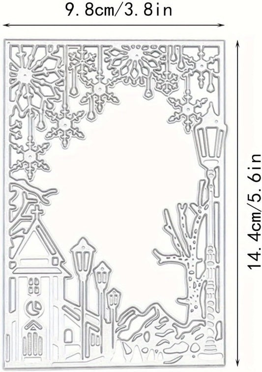 Lapoo Festivals Metal Cutting Die for Scrapbooking - Durable, Cut Stencils for DIY Scrapbook Photo Album Decorative Paper Card, Card Making Supplies, Embossing (Snowflake Street View 3.9 x 5.7 in)