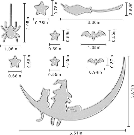 Metal Halloween Die Cuts Moon Cat Spider Star Witch Cutting Dies Embossing Stencil Template for Card Making Scrapbooking Paper Craft Album Stamps DIY Halloween Décor