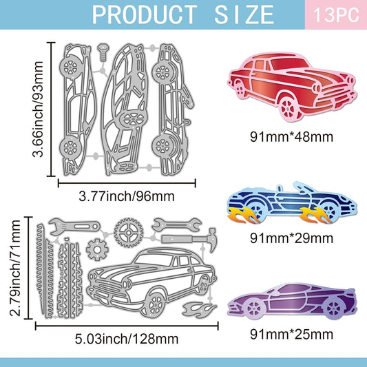 GLOBLELAND Sports Cars Cutting Dies for Card Making Repair Tools Die Cuts Tire Tracks Metal Border Die Cut Dies Stencils for DIY Scrapbooking Embossing Photo Album Craft Decor