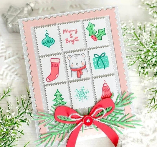 Christmas Stamps Set, Wooden Rubber Stamp with Ink Pad Colored Pencil, Holiday Square Craft Stamp for Stamping Scrapbooking Crafting Booking Card Making Stocking Filler,Christmas Favor Gift
