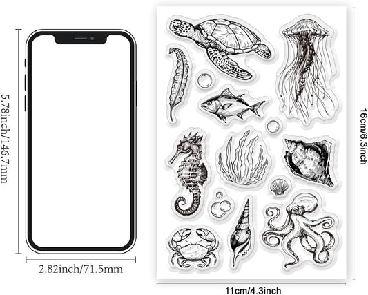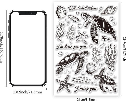 11.7 x 8.3 inch Sea Turtle Clear Stamps for Card Making Marine Organism Rubber Stamps Background Stamps for Card Making Holiday DIY Handmade Decoration Scrapbooking journaling Stamps