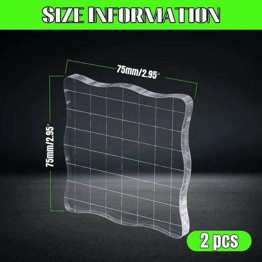 2Pcs Clear Stamp Blocks Set, 3 x 3 Inch Wave-Like Acrylic Blocks for Stamping With Grid Lines - Scrapbooking Crafts Tools