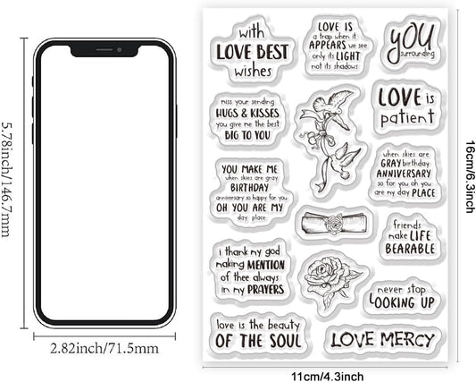 4 Sheets Sentiments Rubber Clear Stamps Set for Card Making and DIY Scrapbooking Journaling 2 Acrylic Stamp Blocks with Grid Lines for Birthday Wedding Wife Husband Anniversary Special Occasion Cards
