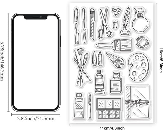 Painting Tools Clear Stamp for Scrapbooking Paint Brush Silicone Clear Stamp Pen Spatula Palette Rubber Transparent Seal Stamps for DIY Handbook Card Making Photo Album Journal Decoration
