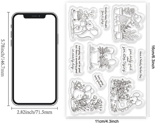 Cute Mouse Garden Planting Flowers Animal Clear Stamps for Scrapbooking DIY Crafting Paper Crafting Card Making Garden Friends Cut Dies Set Happy