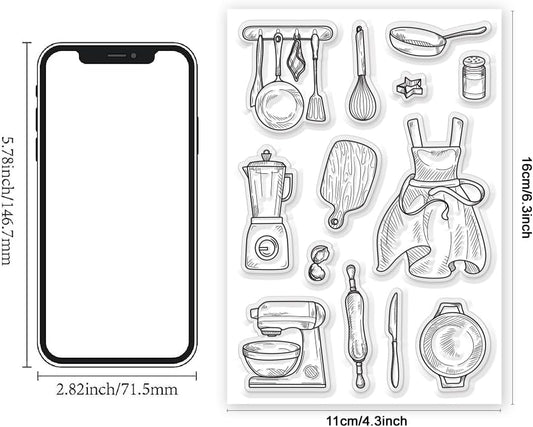 Kitchenware Clear Stamp 6.3x4.3 Cooking Tool Transparent Stamps for DIY Scrapbooking Journal Decor