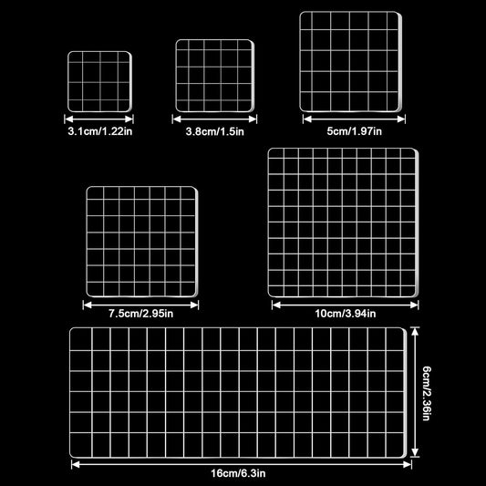 6PCS Acrylic Stamp Block with Grid Lines, Clear Stamping Blocks Tool Decorative Stamp Blocks Square Display Block Set Props for DIY Crafts Scrapbooking Card Making