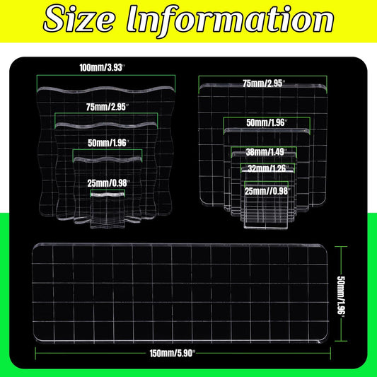 10Pcs Clear Acrylic Stamp Blocks Set, Acrylic Stamping Blocks Tools Clear Stamps with Grid Lines for Photography Props Scrapbooking Crafts Card Making