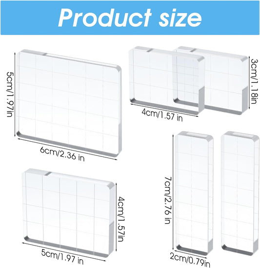 5 Pieces Clear Stamp Blocks Set, Clear Acrylic Stamping Blocks Tool Acrylic Blocks with Grid Lines for Wedding Photography Props Crafts Making