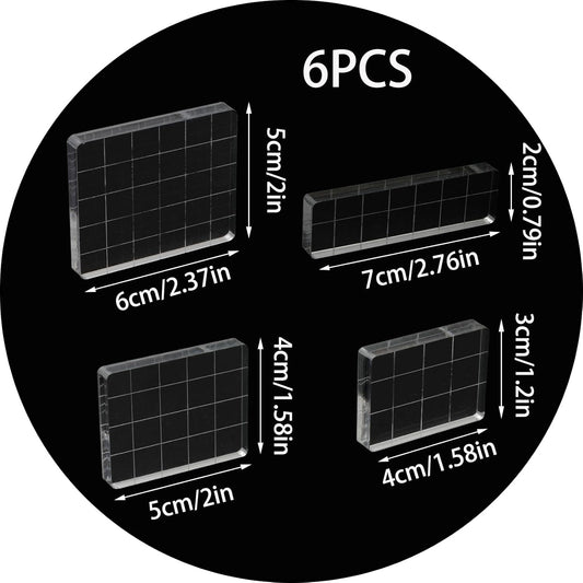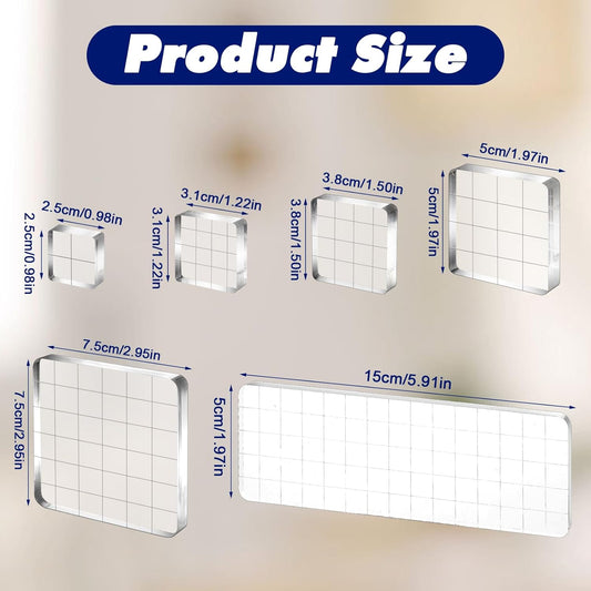 6 Pieces Stamp Block Clear Acrylic Stamping Blocks Tools Set with Grid Lines for DIY Crafts Scrapbooking Card Making Ornaments Stamping Projects
