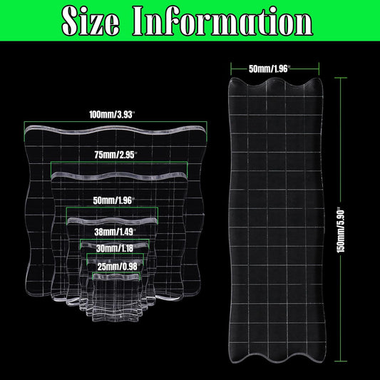 7 Pieces FIVEIZERO Acrylic Stamp Block, Assorted Sizes Clear Stamping Blocks Tools with Grid Lines for Scrapbooking Crafts Card Making and Decorative DIY Essential Stamping Tool(Straight Edge)