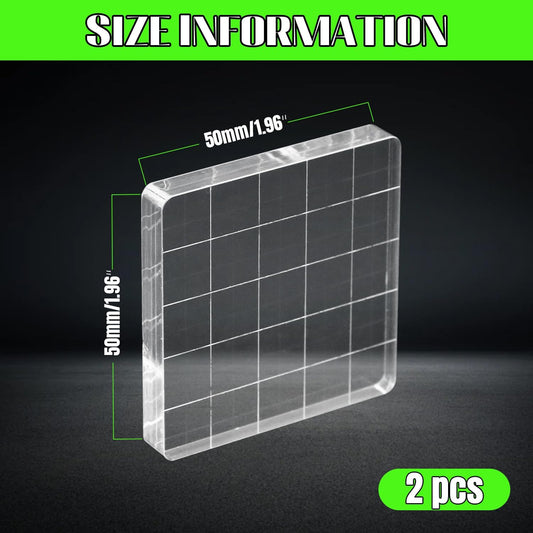 2Pcs Clear Stamp Blocks Set, 2 x 2 Inch Square Acrylic Blocks for Stamping With Grid Lines - Scrapbooking Crafts Tools