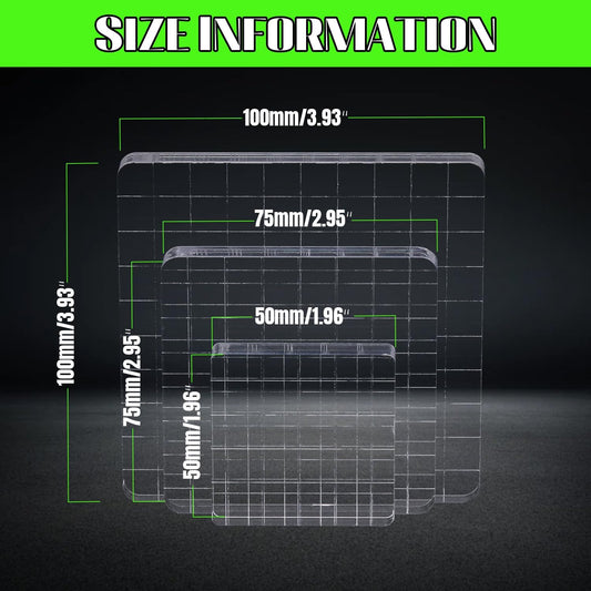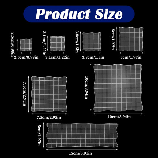 7Pcs Square-Shaped Clear Acrylic Stamp Blocks Set, Acrylic Stamping Blocks Tools Clear Stamps with Grid Lines for Photography Props Scrapbooking Crafts Card Making
