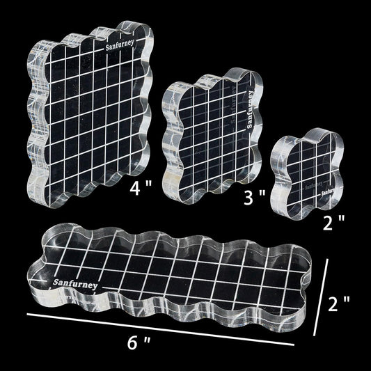 3Pcs Wave-Like Acrylic Blocks Set - Clear Stamp Blocks with Grid Lines for Scrapbooking Crafts