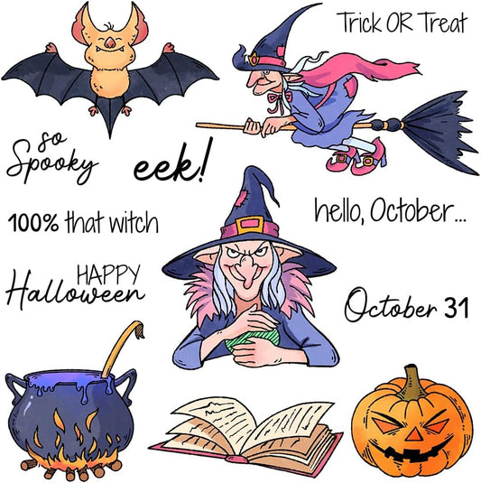 Halloween Clear Silicone stampReusable Stamp with Pumpkins, Skulls, Bats, Santa Claus, and Holiday Designs. Used for Making Cards, scrapbooks, and DIY templates (Halloween Witch)