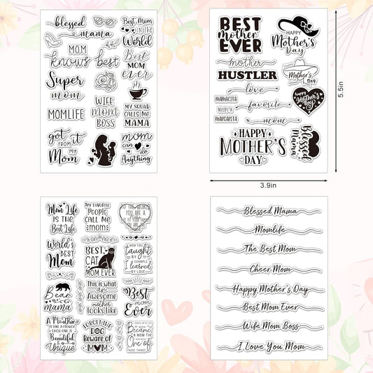 Whaline 4 Sheets Mother's Day Clear Stamps Greeting Words Silicone Transparent Stamps for DIY Craft Card Making Scrapbooking Embossing Album Decor
