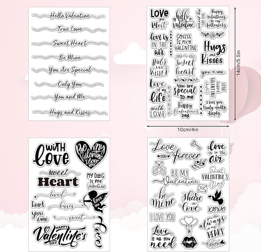 Whaline 4 Sheet Valentine's Day Words Clear Stamps Love Heart Silicone Transparent Stamps Border Stamp Cards for DIY Craft Card Making Scrapbooking Embossing Album Decor