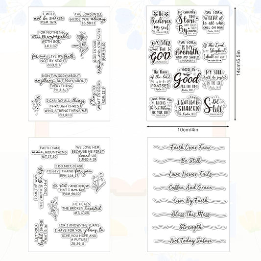 Whaline 4 Sheet Bible Verse Words Clear Stamps Christian God Jesus Silicone Transparent Stamps Border Stamp Cards for DIY Craft Card Making Scrapbooking Embossing Album Decor